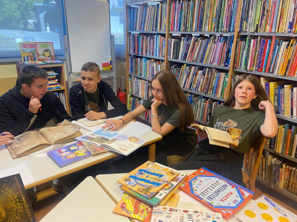 Nakon predavanja, skupina učenika uz pratnju učiteljica Valentine Vidaček, Valentine Premužić i Anje Demšar te knjižničarke Snježane Sedlar posjetili su Gradsku knjižnicu i čitaonicu Novi Marof. U knjižnici su učenici proučavali zapisane legende te knjige o poznatim matematičarima.