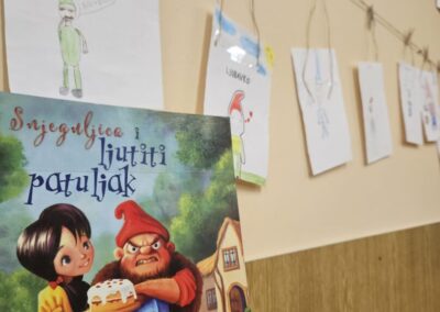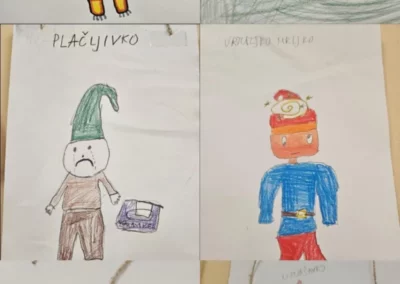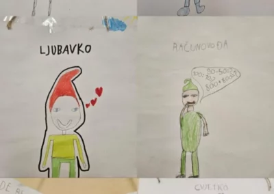 Nakon što smo u kutku za čitanje pročitali slikovnicu Snjeguljica i ljutiti patuljak, učenici su nacrtali svoje patuljke i okarakterizirali ih pa su tako nastali: Tanko, Debeljko, Spavko, Uspavljivko, Kornji, Istraživko, Pahuljasti, Cvjetko, Kamenko, Računovođa, Tužnjavko, Ljubavko, Debeljucko, Dinosaurko, Plačljivko, Vrtuljko Mrljko, Uplašljivko. Na fotografijama ih možete vidjeti te smo sigurni da nećete znati koji vam se više sviđa.