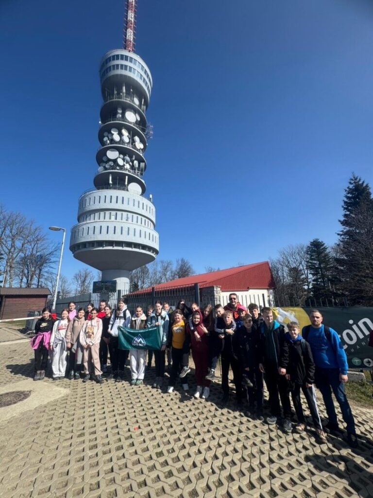 Nakon toga, nastavili smo uspon prema samom vrhu Sljemena. Na vrhu smo se kratko zadržali i poslušali zanimljivosti o tornju, njegovoj izgradnji te o korištenju žičare koja povezuje Zagreb i Sljeme.