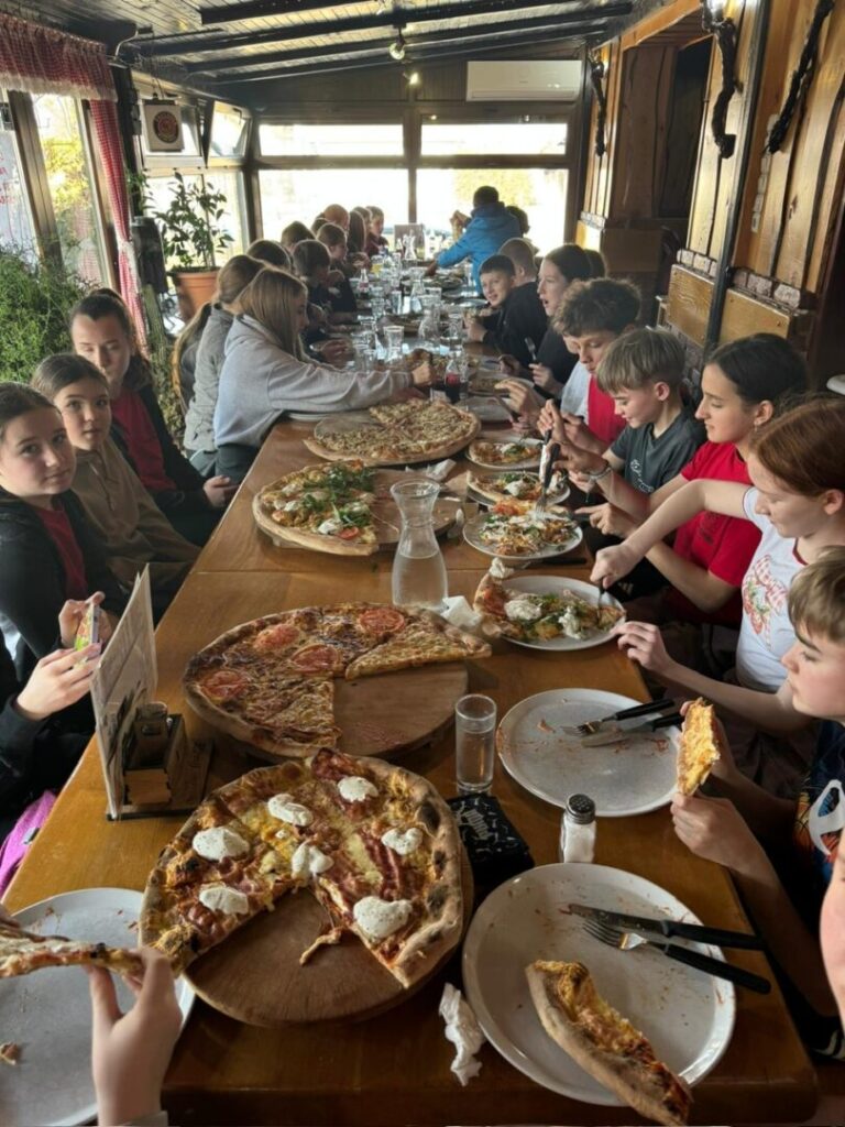 Nakon odmora, vratili smo se prema Maloj Hunjki gdje nas je čekao autobus. Slijedio je put prema Oroslavlju gdje smo u pizzeriji Oro Goro imali unaprijed dogovoren ručak. Uz razgovor i prepričavanje doživljaja s izleta učenici su uživali u zasluženom obroku.