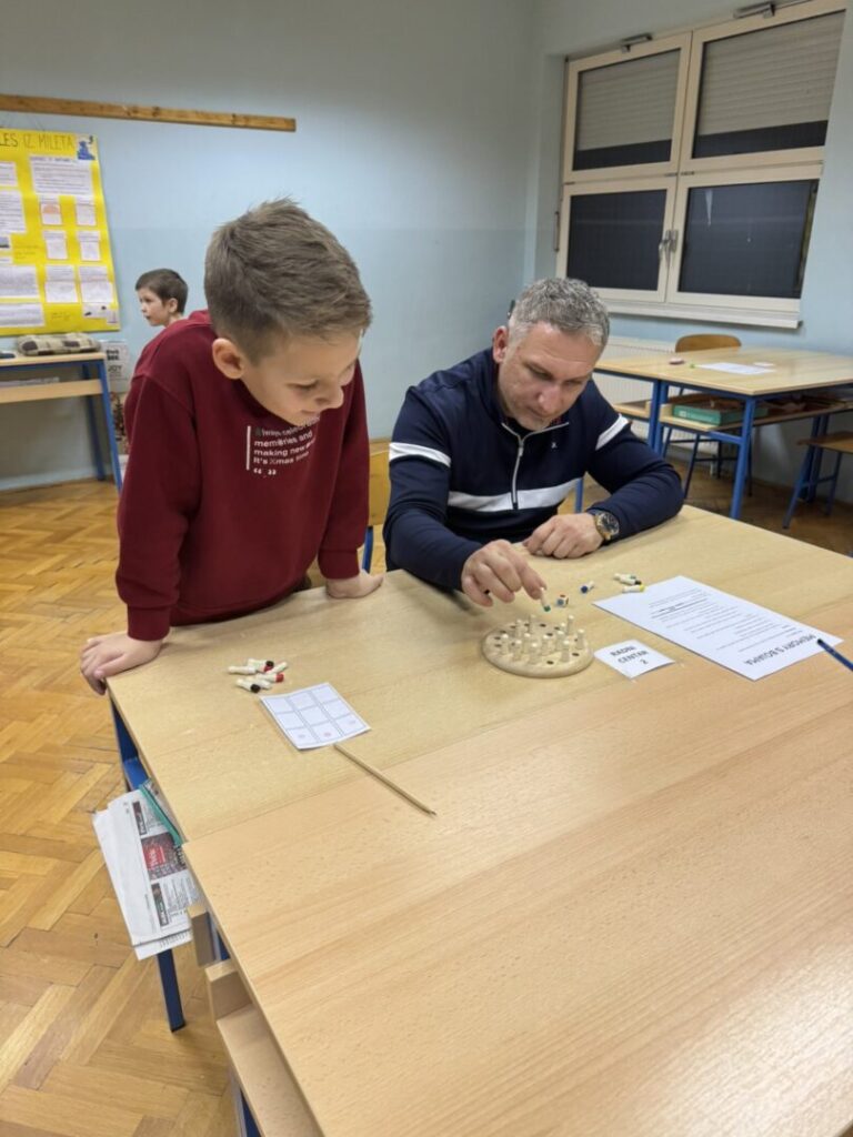 Učenici su sudjelovali u raznim matematičkim igrama i izazovima, rješavali zadatke, natjecali se i međusobno pomagali. Uz puno smijeha i dobre volje, otkrili su da matematika može biti zabavna, kreativna i pristupačna svim uzrastima. Roditelji su rado sudjelovali u aktivnostima i podržavali svoje mališane, stvarajući toplu atmosferu zajedničkog učenja.
