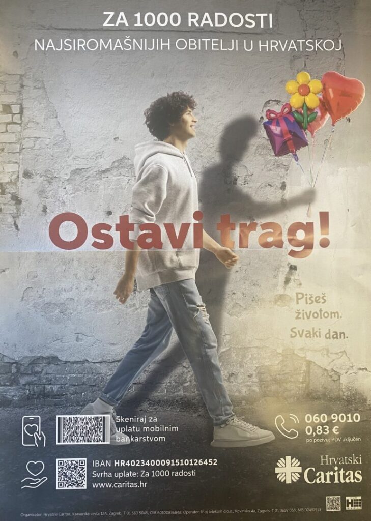 Već dvadesetak godina zaredom Hrvatski Caritas uz potporu i preporuku Ministarstva znanosti i obrazovanja sredinom studenoga započinje godišnju provedbu programa Za 1000 radosti, ove godine pod sloganom Ostavi trag!